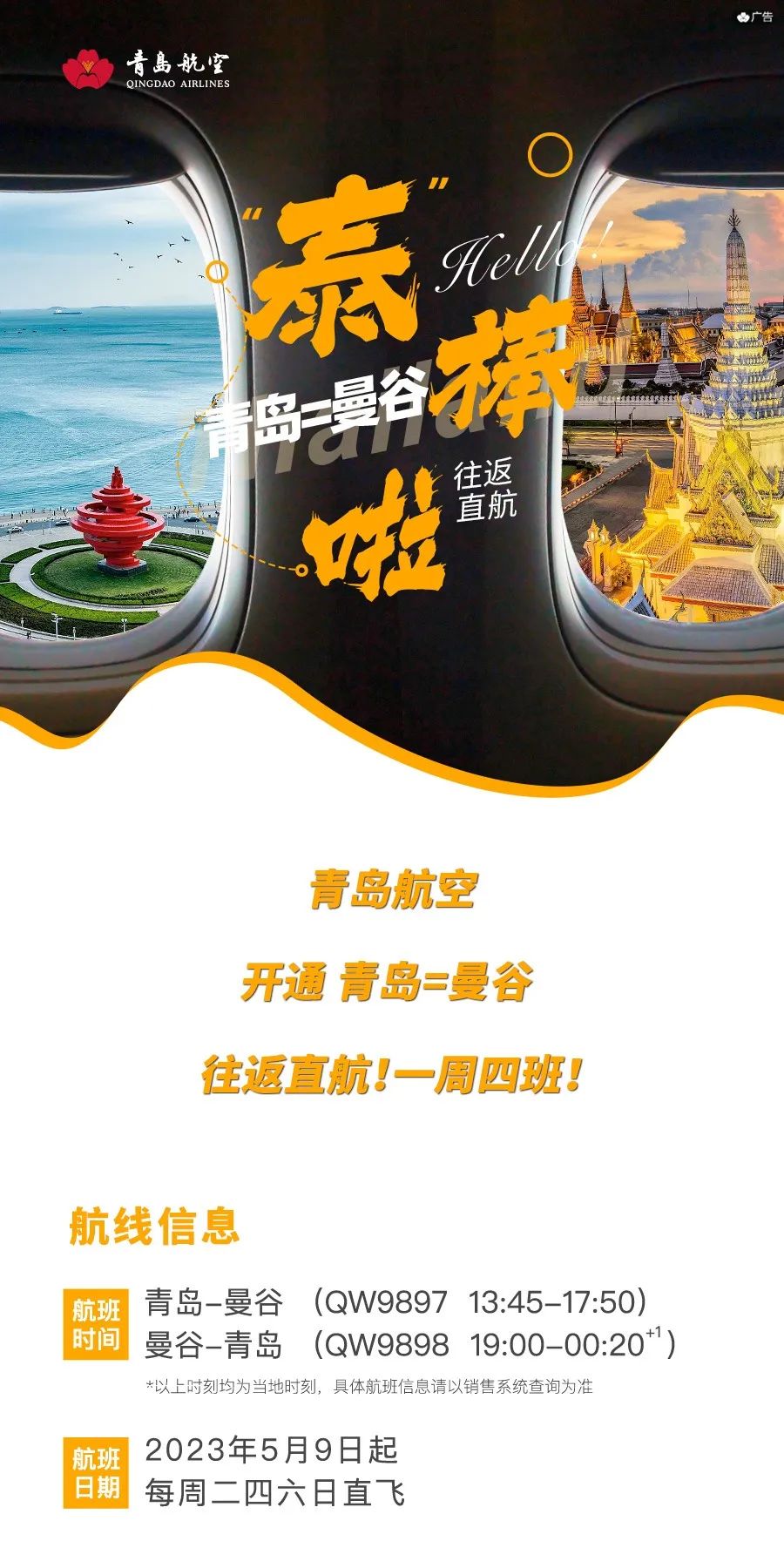 中國民航網:青島航空新開青島—曼谷直飛航線!